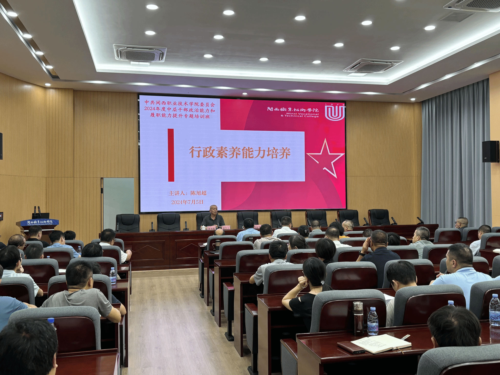 下午,龙岩学院办公室主任陈旭超为全体中层干部作题为《行政素养能力提升》的专题报告。陈旭超主任针对高校行政事务工作的规律和特点,结合自身长期的行政工作经验,以深入浅出的语言、生动详实的工作案例,与学校中层干部就如何做好高校行政管理工作进行深入的交流分享。