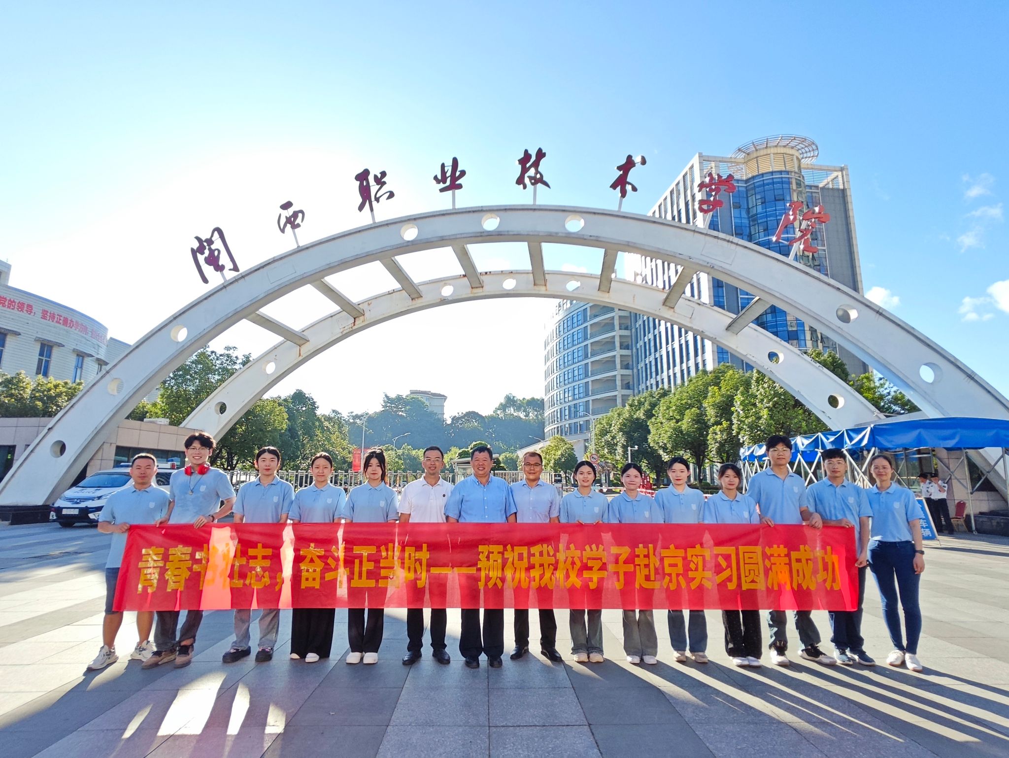 7月6日学校刘路永副校长、学工处领导、文旅院领导在学校西大门为赴京实习小组举行了出征仪式。刘路永副校长强调此次实习之旅,不仅是一次专业技能的磨砺,更是一场心灵与意志的洗礼。学生们要深入学习、实践,全面提升自身的综合素质。期待同学们满载而归,以更加饱满的热情和更加卓越的能力,为闽大增光添彩!