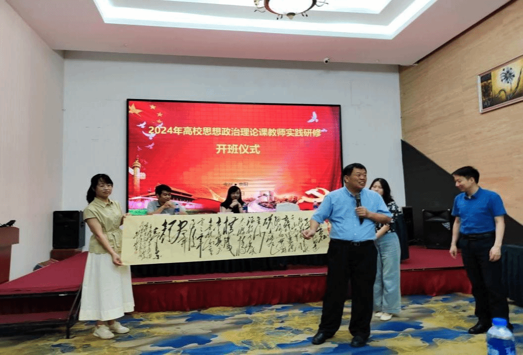 在开班仪式上,刘路永副校长向贵州师范大学马克思主义学院赠送由他本人敬书的毛主席词《长征.七律》书法作品。