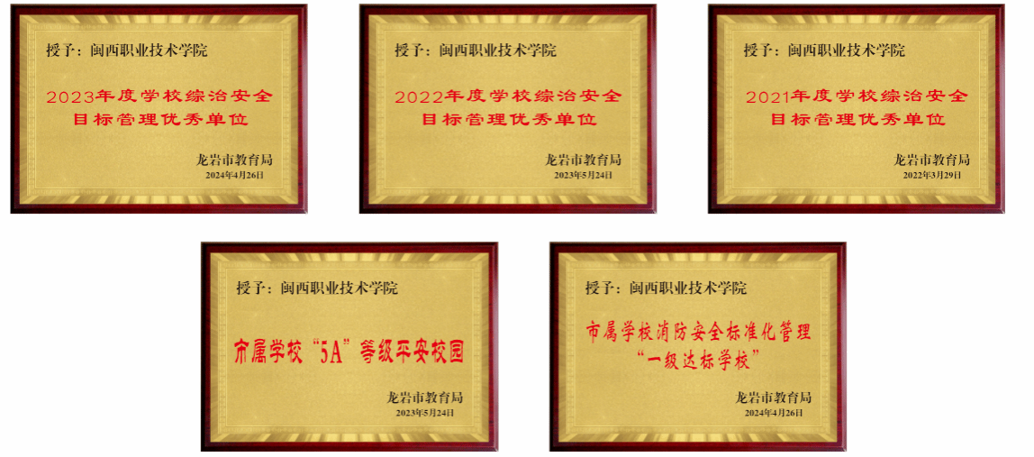 2021年、2022年、2023年,学校连续三年获评市综治安全目标管理优秀单位,并于2023年顺利获评市“5A”等级平安校园、首次获评市消防一级达标学校。