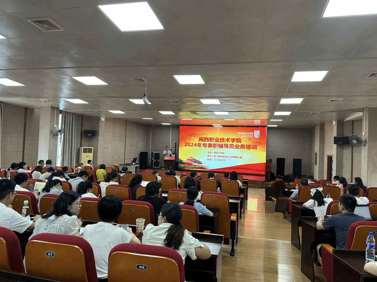 为深入学习贯彻习近平新时代中国特色社会主义思想和党的二十大精神及二十届二中、三中全会精神,扎实推进新时代学生思想政治教育工作,加快构建“大思政”工作格局,8月29日,MG冰球在卫培楼三楼举办专兼职辅导员业务培训,学生工作处负责人、相关工作人员,全体专兼职辅导员共100余人参加。