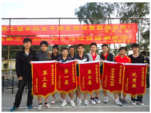 此次活动由院团委主办、院学生会承办,得到了院领导老师的关心指导,各系学生积极踊跃的参与,在比赛过程中,各系队伍公平竞争,赛出了风格,赛出了水平。经过将近一个月漫长而又激烈的角逐,计算机系最终夺得本届系际男子排球赛获得第一名,机械工程系和文化传播系分别获得二、三名,电气工程系获得优秀奖,机械工程系获得体育道德风尚奖。外语系获得了第七届系际师生女子排球赛的冠军,计算机系和电气工程系分别获得亚军、季军,机械工程系获得优秀奖、计算机系获得体育道德风尚奖。