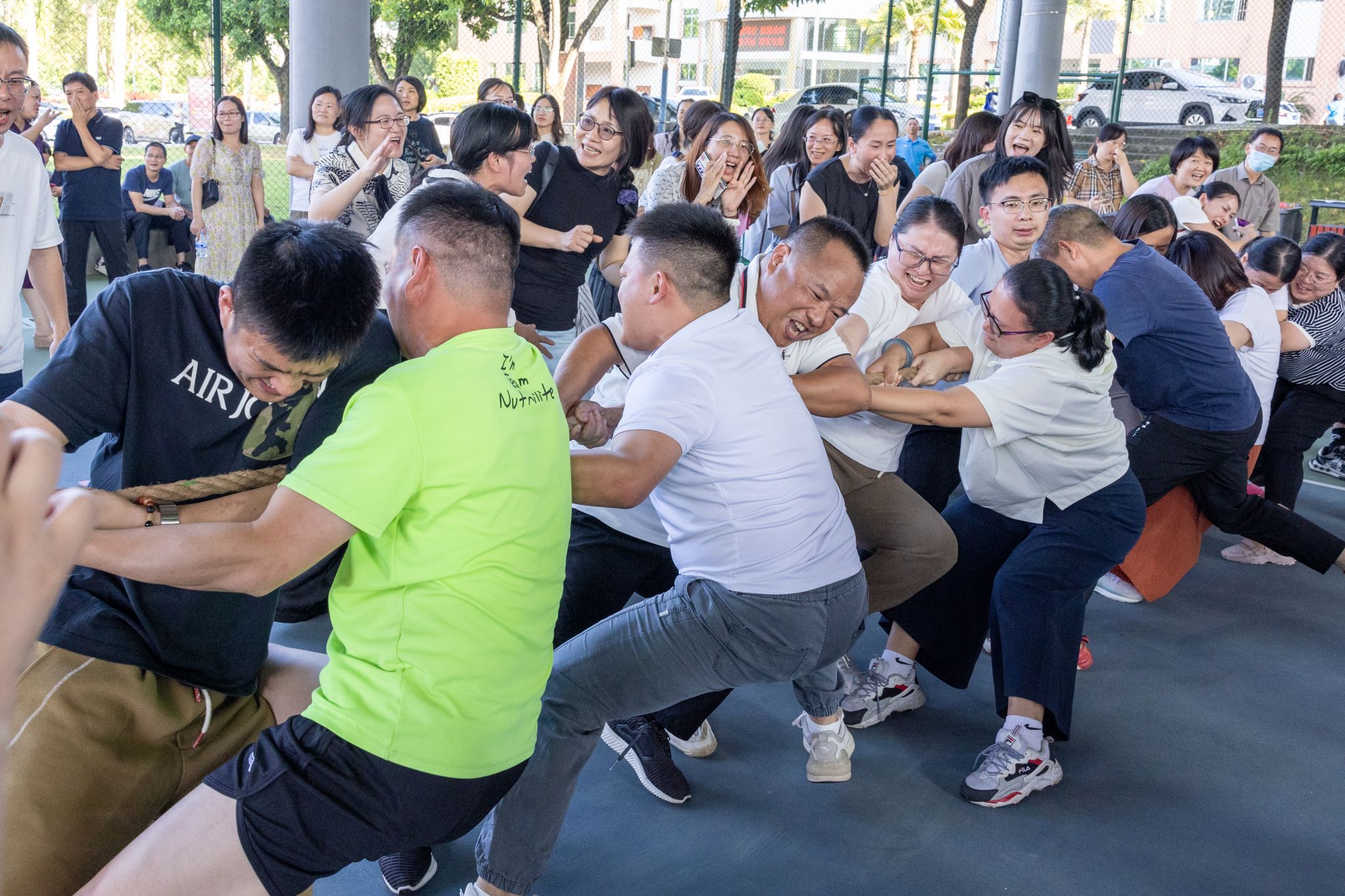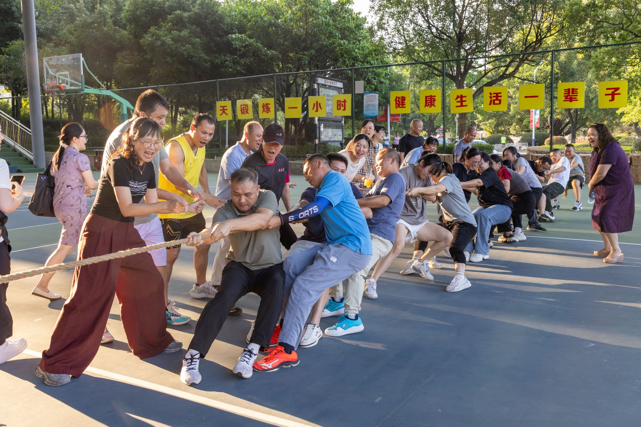 本次拔河比赛以工会小组为单位共有12支代表队参赛,比赛实行淘汰赛,三局两胜制。