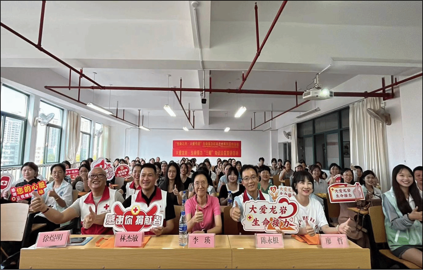 讲座中,龙岩市红十字会“三献”知识宣讲团成员徐煜明、林杰敏、王瑜、张贺兴等人用深入浅出的语言介绍了红十字运动发展史以及无偿献血、造血干细胞捐献和人体器官(遗体)捐献等知识,并分享了“三献”中的感人事迹。