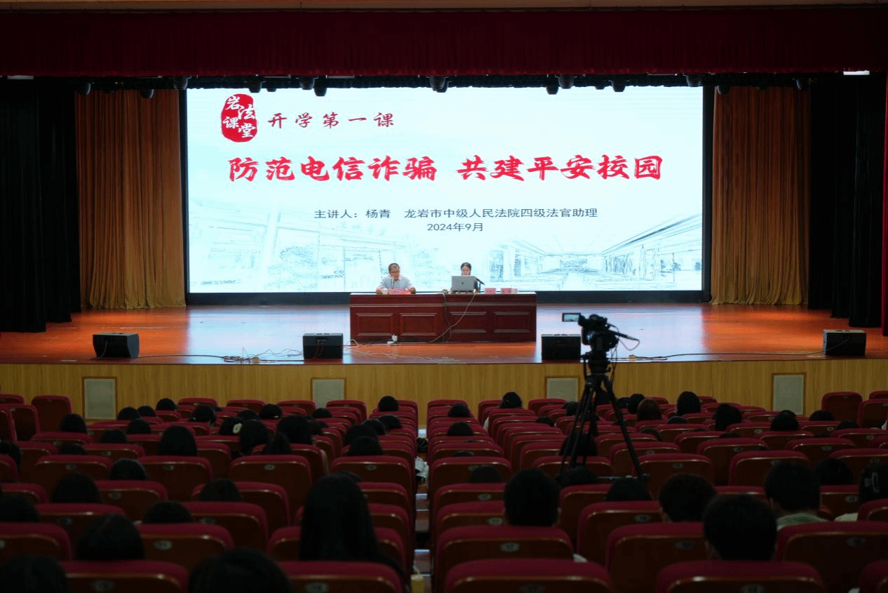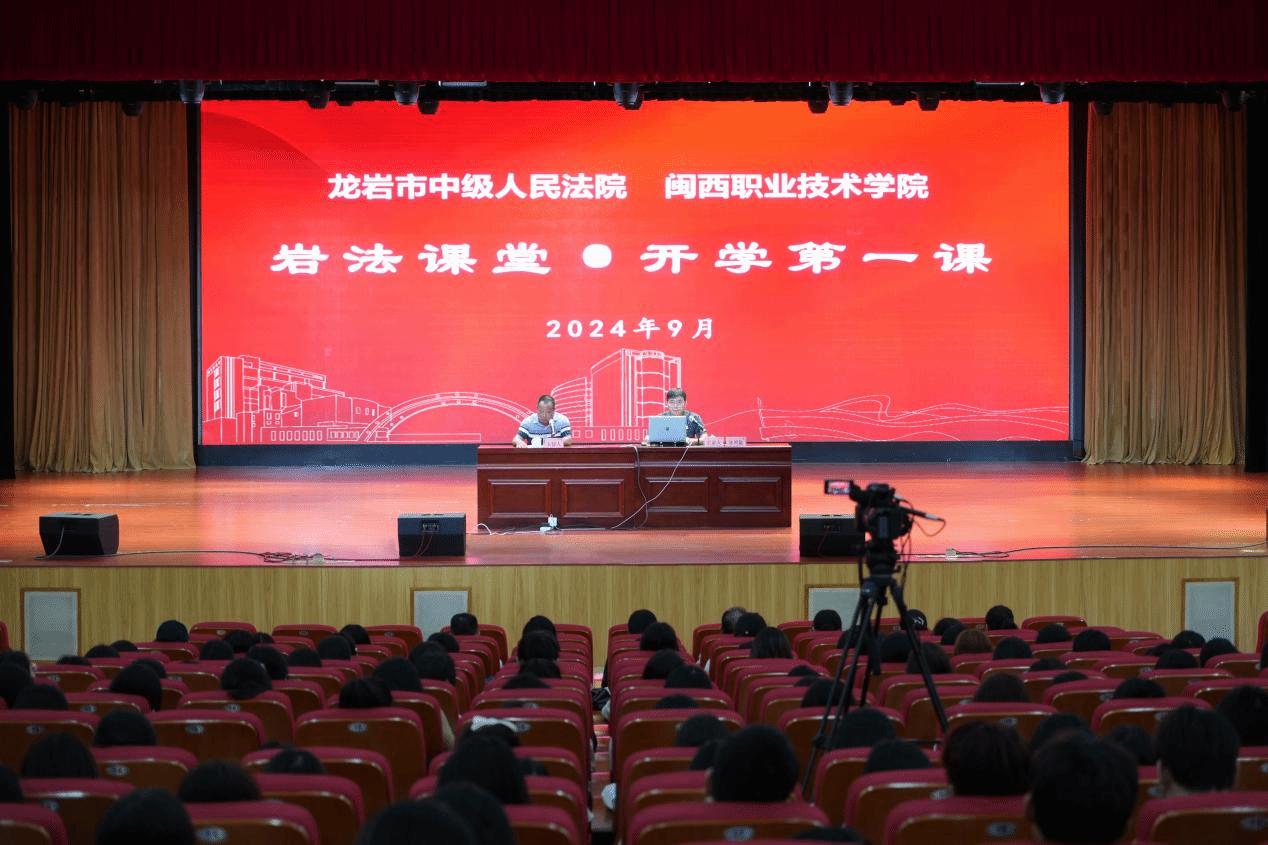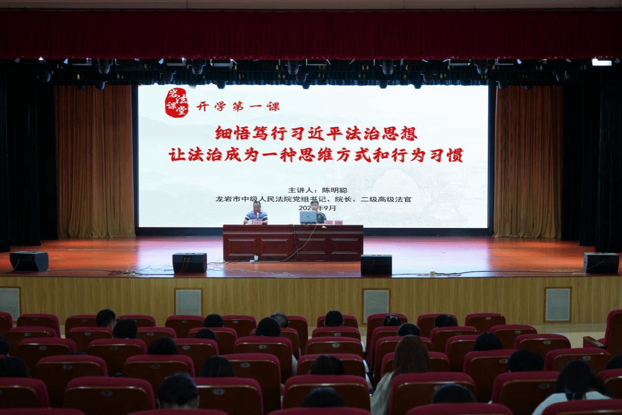9月20日上午,龙岩市中级人民法院党组书记、院长陈明聪一行在MG冰球大匠堂开展“开学第一课”法治宣讲活动。活动由校党委林伟能副书记主持,法院工作人员、学校相关部门负责人、在校学生代表共600余人参加。