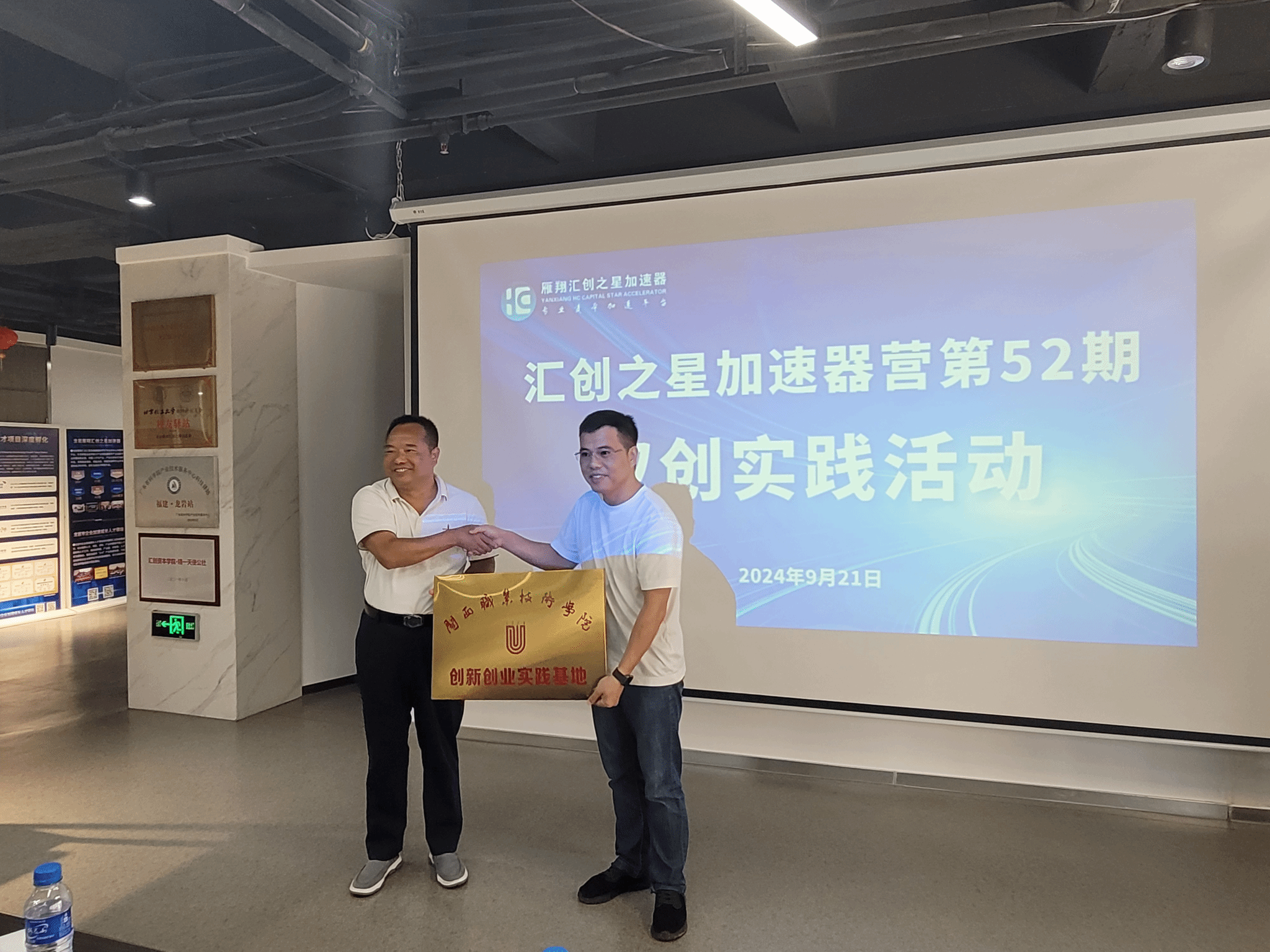 在龙岩雁翔汇创之星加速器,林伟能副书记为MG冰球双创工作合作单位龙岩雁翔汇创之星加速器授予“MG冰球突破官网创新创业基地”的牌匾,并为MG冰球创新创业导师林国森、张自铝颁发了聘书。副总经理林国森以“职业规划与创业的融合”为主题进行了沙龙讲座,分享了雇主思维和求职者思维的不同、创业项目的重要影响因素、“职业、企业、行业”成长中须发展的的六种能力,鼓励青年人要做好生存期-发展期-事业期的人生规划,为青年大学生带来一堂兼具高度、深度和温度的就业创业思政课。运营总监张自铝全面介绍了加速器平台强大的功能、服务能力和取得的突出业绩。