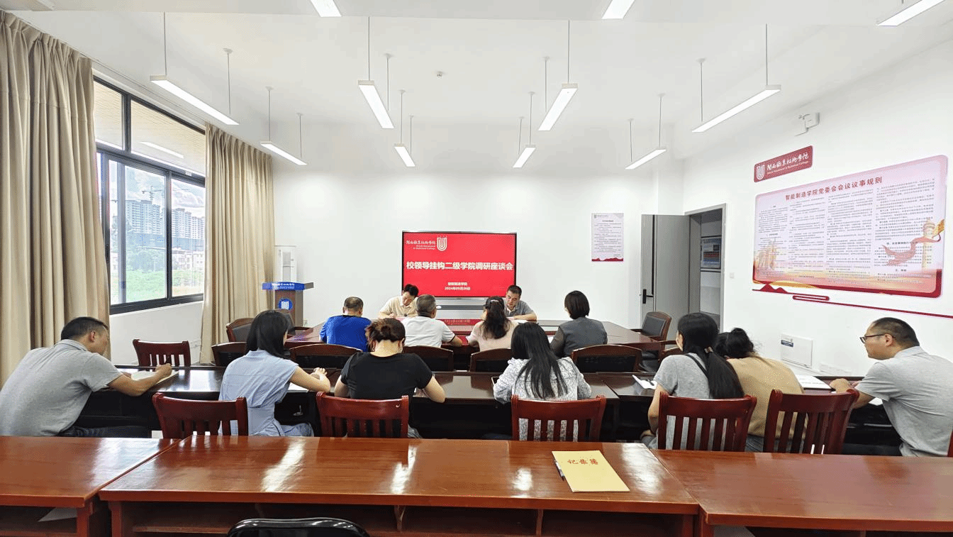 为深入贯彻党的二十届三中全会精神,推进二级学院深化改革,9月26日下午,学校党委书记卢伟耀深入智能制造学院调研,党政办丛山副主任陪同,学院领导班子成员、相关专业主任、辅导员、教师代表参加调研座谈。