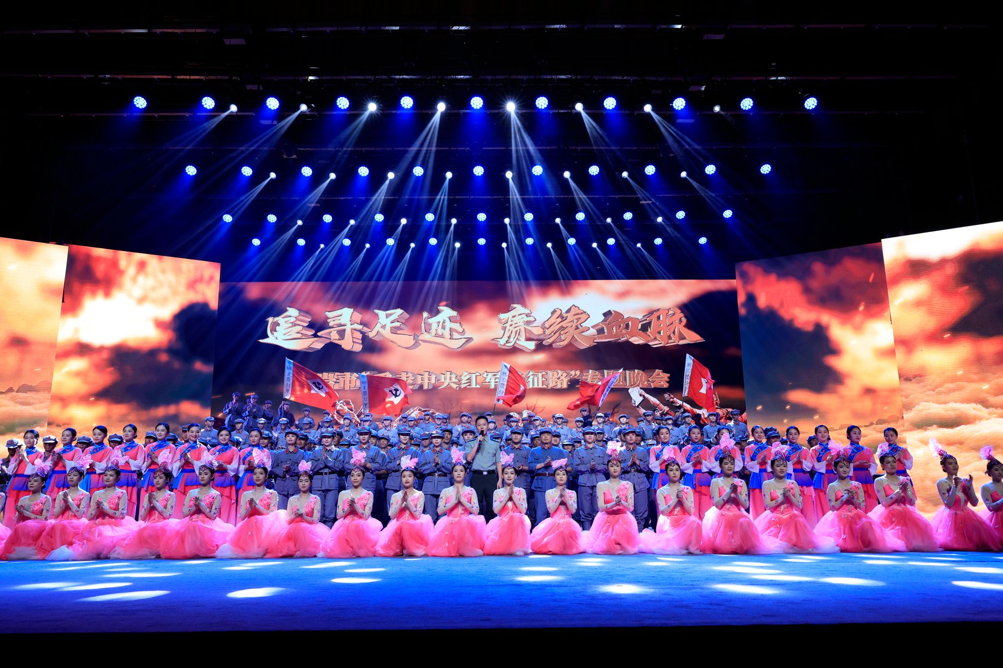 整台晚会以中央红军二万五千里长征为背景创作,以“追寻足迹 赓续血脉”为主题,由序章“红色记忆”和“薪火岁月”“长缨在手”“光辉之路”“永恒丰碑”四个篇章及尾声组成。展现了从长征出发到胜利会师,再到新时代在党的带领下,中国人民走上以中国式现代化全面推进中华民族伟大复兴的新征程,也向人们讲述了闽西儿女义无反顾参军报国的英雄壮举。