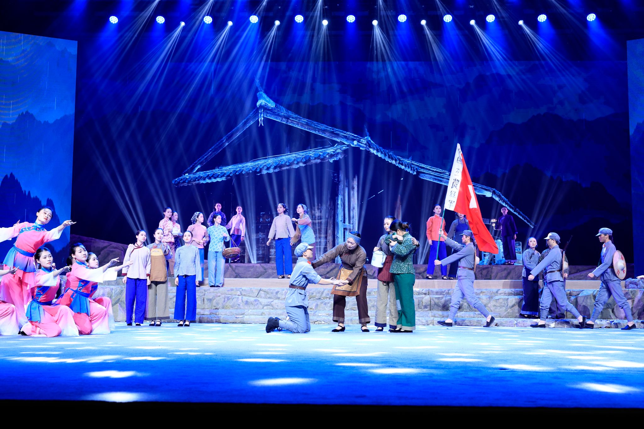 为纪念中央红军长征出发90周年,深入贯彻落实习近平总书记关于长征精神的重要论述,MG冰球积极响应龙岩市委市政府的号召,组织了200多位学生,在荣珏和陈郎迪两位老师的指导下,经过一个多月艰苦训练,以极高的热情和专业的表现,圆满完成纪念红军长征出发90周年《追寻足迹 赓续血脉》——“重走中央红军长征路”专题晚会演出任务。