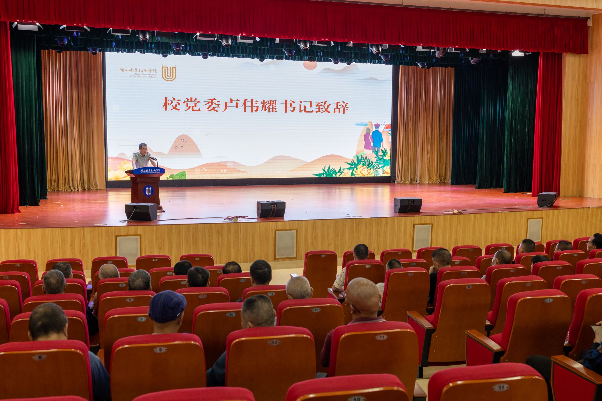校党委卢伟耀书记为本次大会致辞。他代表学校党委、行政向各位老同志致以节日的祝贺和亲切的问候,对老领导、老前辈们多年来一如既往地关心、支持学校发展表示衷心的感谢。大会上,卢伟耀书记向各位老同志介绍了学校今后的发展方向,展望了学校未来发展的美好前景,他深切期望,各位老同志们继续发挥余热,关心和支持学校高质量发展,共同为打造“予生最好学校”献计献策。
