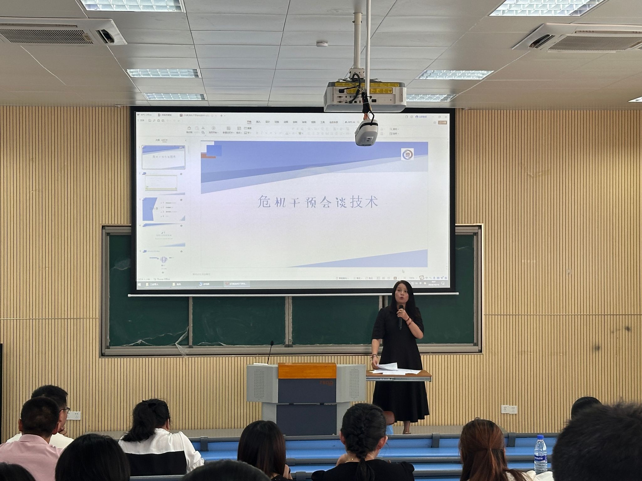 本次培训从“辅导员在心理危机干预中的定位和工作重点”“学生心理危机常见问题产生的原因及心理过程”“心理危机的筛查及危机后的干预工作流程”“重点关注学生的访谈评估及二级学院的配合”“辅导员的自我成长与关怀”等五个部分展开。