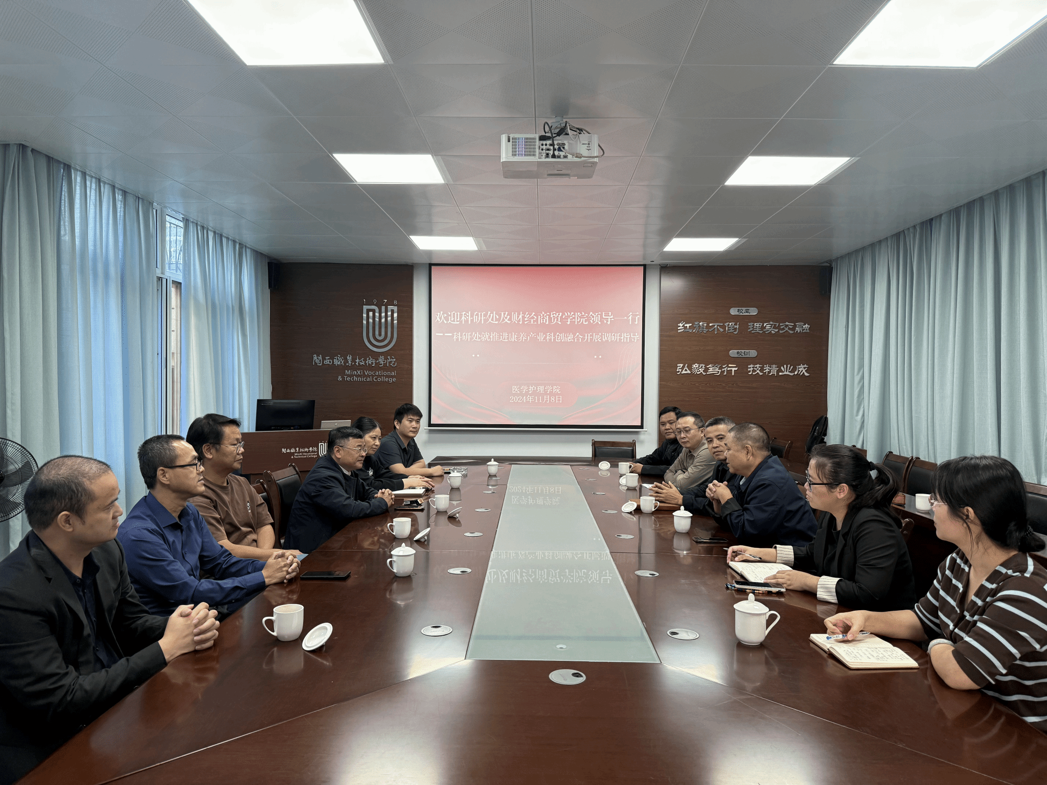 为更好加强“科教融汇建设年” 指导和推动工作,2024年10月8日,科研处处长卢德湖教授一行到医学护理学院开展调研。