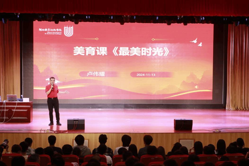 2024年11月13日,夜幕降临,华灯初上,MG冰球首场美育特色课在大匠堂悄然而至。校党委书记卢伟耀以“最美时光”为主题,引领信息工程学院、软件工程学院800余名学生踏上了一场启迪心灵的美育之旅。