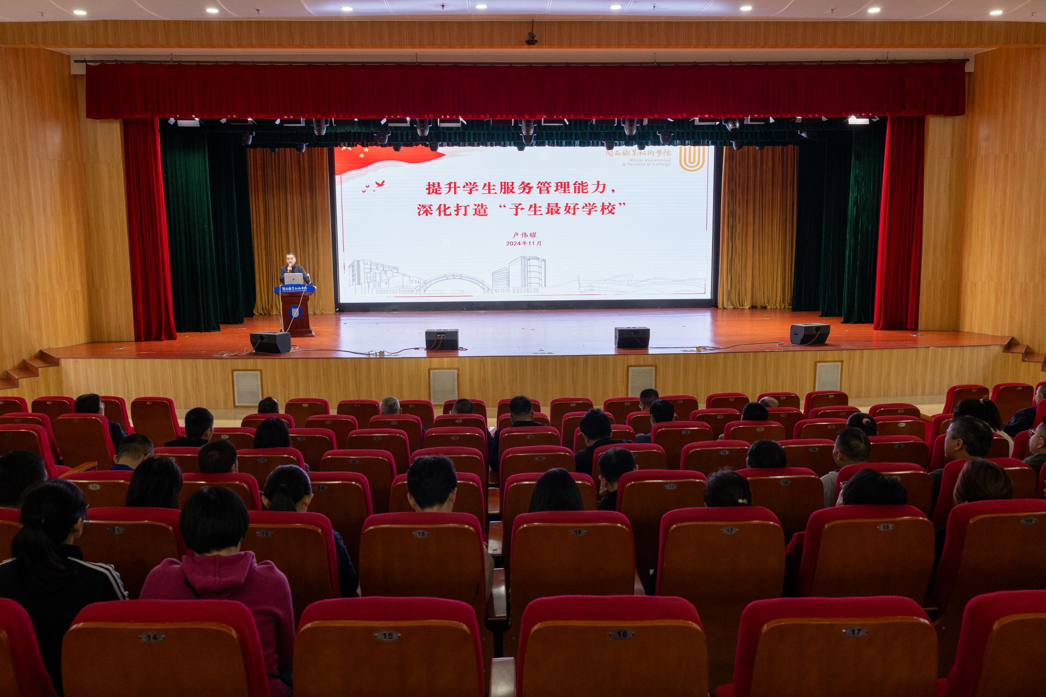 11月26日下午,MG冰球在大匠堂召开了学生服务管理能力提升工作会议,旨在提高学生服务管理水平,确保2025届毕业生就业工作的顺利进行。全体校领导、相关职能部门及各二级学院全体教职员工参加了此次会议。