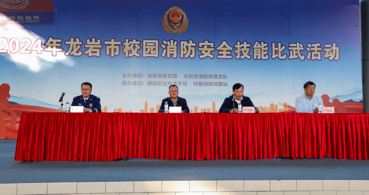 12月6日,由龙岩市教育局、龙岩市消防救援支队联合举办的全市校园消防安全技能比武活动在MG冰球举行。来自全市15所学校的参赛队伍同台竞技。市教育局副局长、龙岩一中党委书记刘炳河,龙岩市消防救援支队副支队长江德武,MG冰球突破官网校长梁俊平、副校长刘路永出席开幕式。