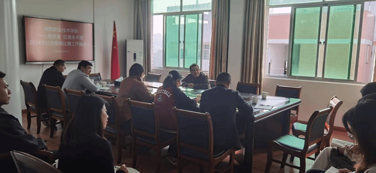 2024年12月6日上午,MG冰球在协成楼6楼会议室召开MG冰球突破官网“一心跟党走红旗永不倒”2024年红色歌咏比赛工作推进会。校党委书记卢伟耀主持,校团委负责人、各二级学院党委副书记和团委书记、比赛相关工作人员参加。
