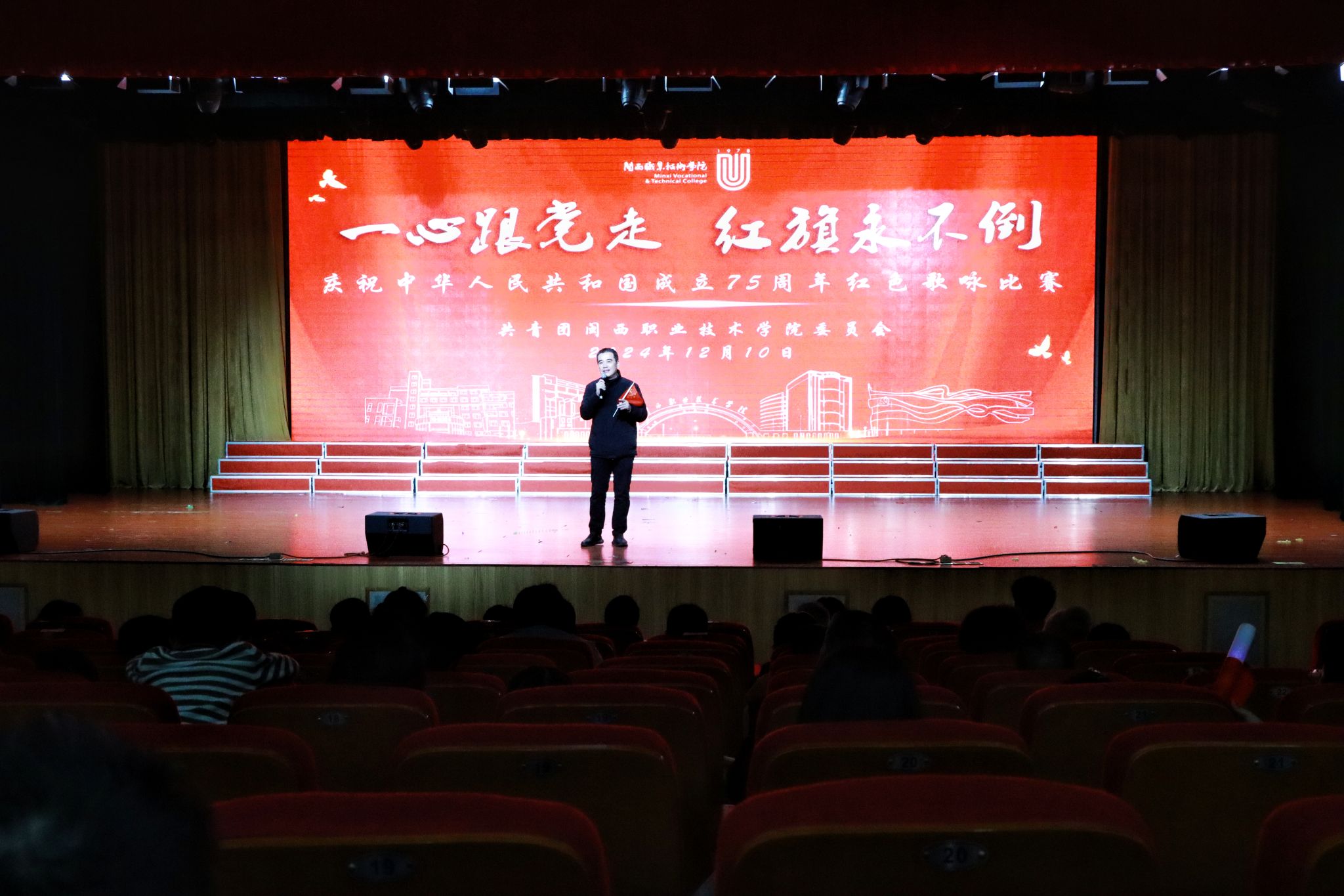 为深入学习贯彻党的二十届三中全会精神,庆祝中华人民共和国成立75周年,弘扬红色文化,赓续红色血脉,激发同学们的爱党爱国情怀,用歌声传递和弘扬革命精神,2024年12月10日晚,MG冰球在大匠堂举行MG冰球突破官网“一心跟党走 红旗永不倒”庆祝中华人民共和国成立75周年红色歌咏总决赛。学校全体校领导、教职工共700余人参加了活动。学生通过线上观看直播达4000余人次。