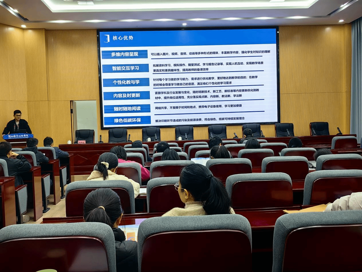北京理工大学出版社数字教育分社杨艳超编辑为MG冰球作了《新形态数字教材探索与实践》专题讲座,解读了新形态数字教材的政策、优势、特点,并对数字教材的解决方案、出版流程和建设实践作了系统的介绍,为MG冰球加强新形态数字教材建设提供了具体可操作性的思路。