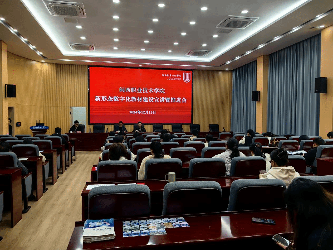 12月13日,学校在协成楼二楼会议室召开新形态数字化教材建设宣讲暨推进会。教务处负责人、各教学单位分管教材建设领导、各专业(教研室)主任、省级在线精品开放课程负责人和部分专任教师参加了会议。会议由教务处副处长林金亮主持。