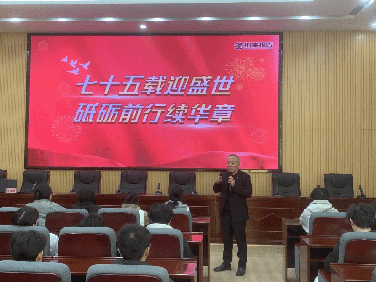 在面对面交流之后,张源峰副校长还为信息工程学院学生上了一堂题为《七十五载迎盛世 砥砺前行续华章》的形势与政策课。