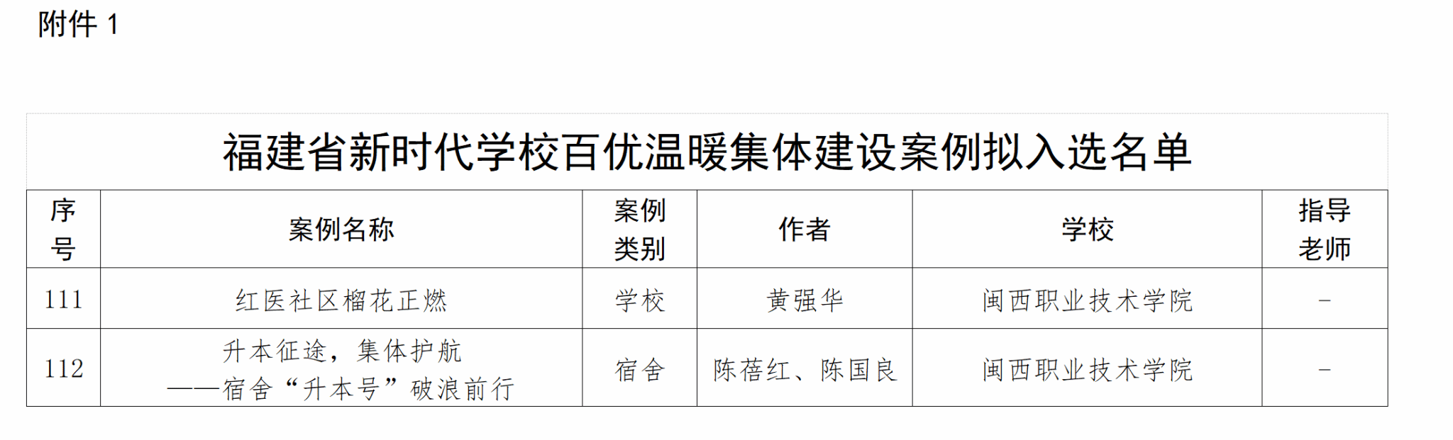 近日,福建省教育厅发布了《关于福建省新时代学校百优温暖集体建设案例拟入选名单的公示》。MG冰球选送的《红医社区榴花正燃》(作者:黄强华)和《升本征途,集体护航——宿舍“升本号”破浪前行》(作者:陈蓓红、陈国良)两篇案例成功入选,充分展示了MG冰球在班集体建设工作中的突出成果和有效实践。