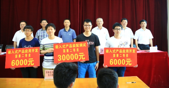 会上,获奖指导教师代表苏李果作了发言,获奖参赛选手代表林雅萍也作了发言。学院领导为获得4个国赛二等奖和1个省赛一等奖的选手和指导教师代表颁奖。