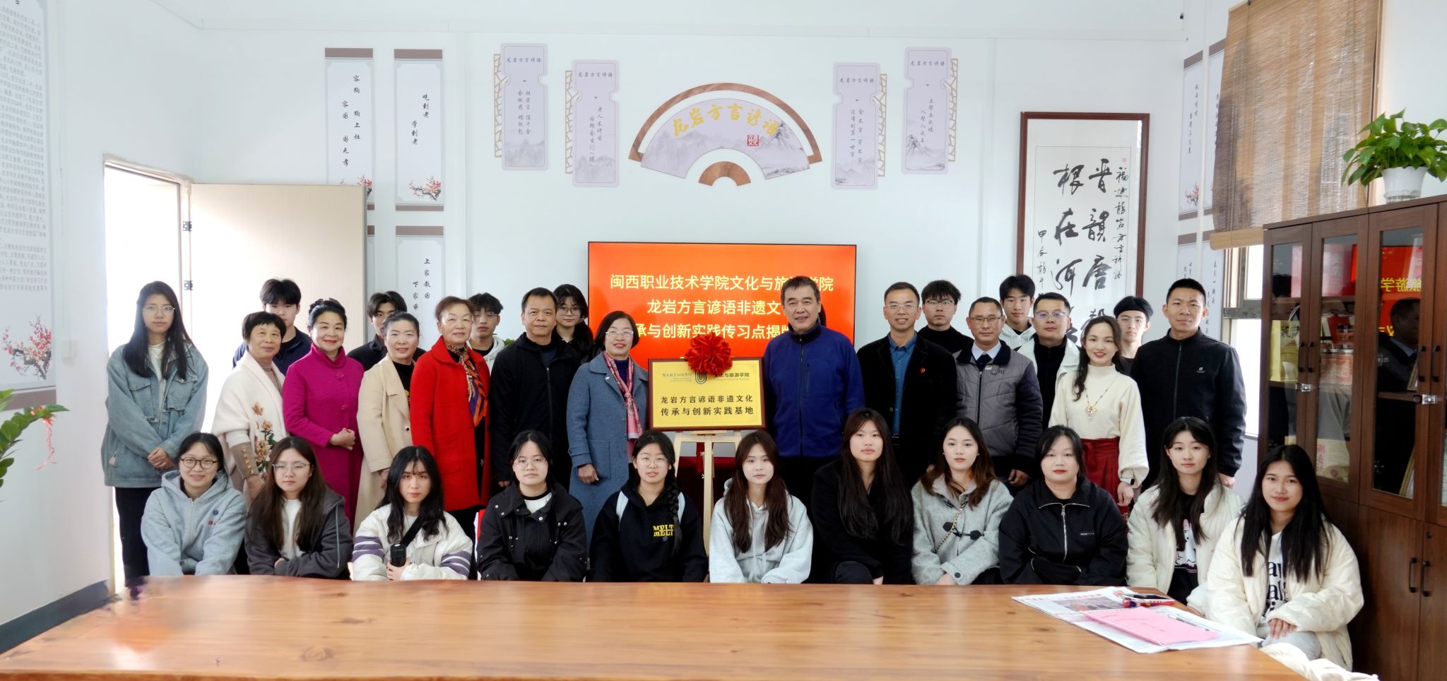 近日,文化与旅游学院在龙岩非遗文创园举行了“龙岩方言谚语非遗文化传承与创新实践基地”揭牌仪式。该实践基地的设立旨在深化非物质文化遗产保护,推动龙岩方言谚语的传承与创新实践,进一步弘扬闽西地域文化特色。校党委书记卢伟耀、龙岩方言谚语非遗传承人王笑芳老师以及文化与旅游学院部分领导班子成员、专业老师和学生代表参加了揭牌仪式。