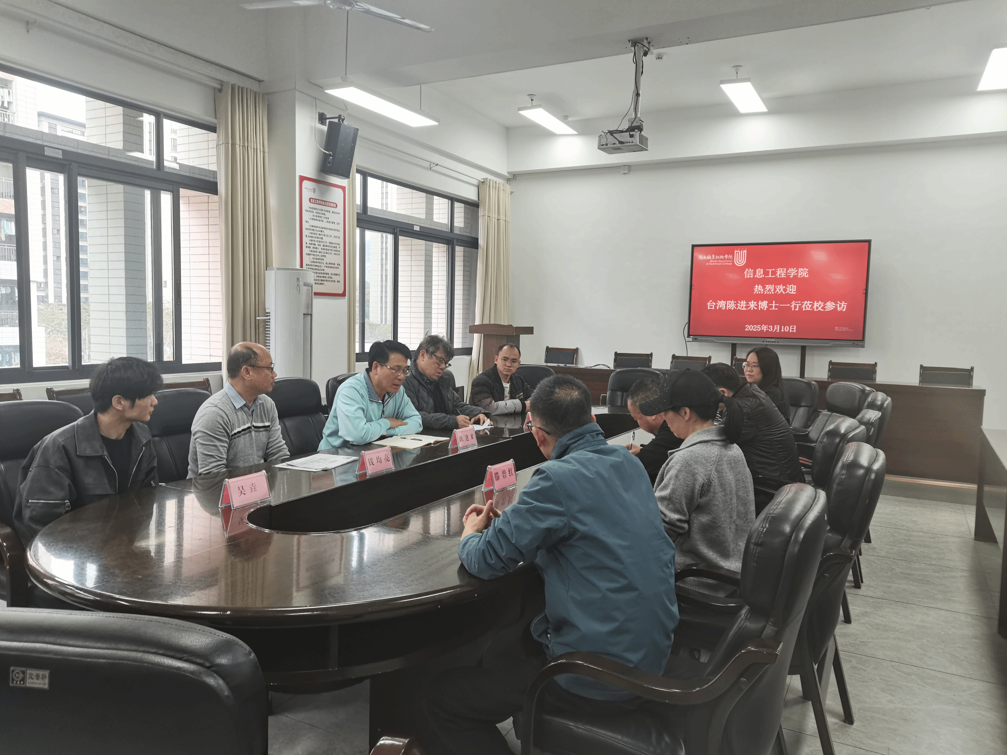 3月10日,台湾陈进来、陈俊旗、钱均亮一行三位博士来校访问交流。学校对外交流合作处、信息工程学院师生参加了相关活动。