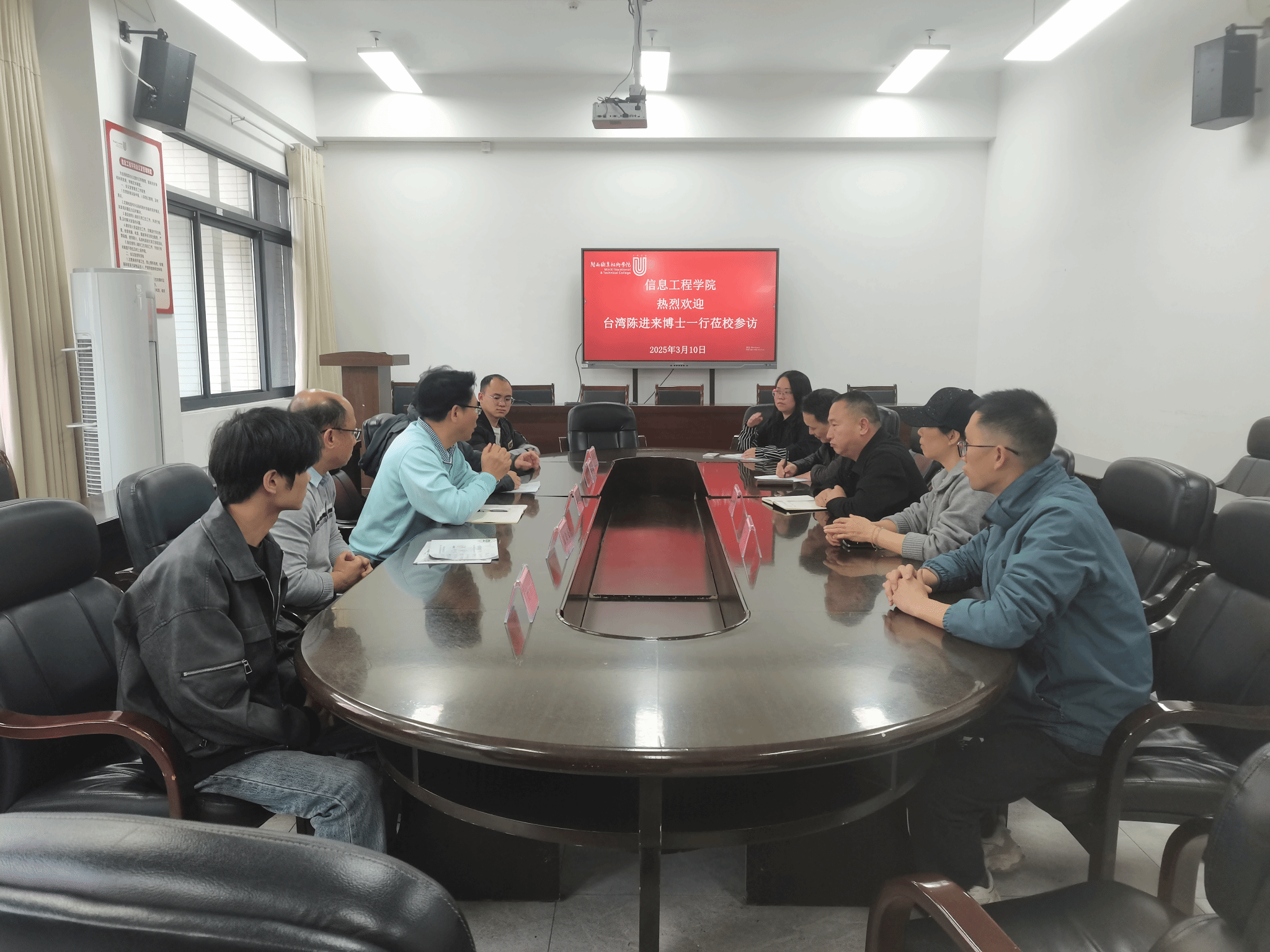信息工程学院负责人向台湾博士团队介绍了学校办学情况和信息工程学院的基本情况和特色亮点,并表示,学校一直高度重视闽台教育交流合作,希望与台湾博士就MG冰球人工智能技术应用专业建设、课程建设、师资队伍、实验室建设等开展全方位的交流合作,推动闽台高等教育融合发展。台湾博士团队从专业定位、教育合作、科研创新、人才培养等方面与MG冰球师生进行广泛而深入的探讨。