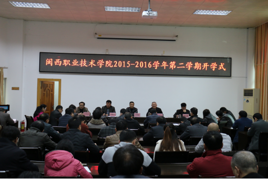 来永宝院长作新学期工作部署讲话。他指出,2016年是实施“十三五”规划的开局之年,是我院“新一轮提升”的起步之年,全院上下要牢牢把握强化内涵、彰显特色、打造品牌三大主题,全力打好福建省示范性现代职业院校建设工程项目培育、市职业教育公共培训实训基地建设两大战役,重点抓好“打好项目战役,厚植发展根基”“落实行动计划,提高办学质量”“实施创新驱动,增强发展动能”“着力对接融合,充实发展内涵”“做好团学工作,强化红土育人”“加强基础建设,提升保障能力”“全面从严治党,加强党的建设”等七个方面工作,补齐短板,充实内涵,勇于争先,再创辉煌。