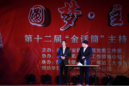 12月26日晚,MG冰球突破官网第十二届主持人大赛总决赛在槟龙球场拉开帷幕。本届大赛以“圆梦·主持”为主题,由党委工作部主办,各系(部)学生工作领导小组协办,院“希望之声”广播站(大学生记者团)承办。总决赛邀请到龙岩电视台著名主持人、新闻部副主任、主任播音员、我院优秀校友丁洁,龙岩电视台社教部副主任、主任记者赖珊盛,龙岩电视台著名主持人、国家二级播音员白雪、黄艳迪,副教授李裕文等5位专家作为大赛评委。学院有关部门及党总支负责人,部分师生800多人观看了比赛。