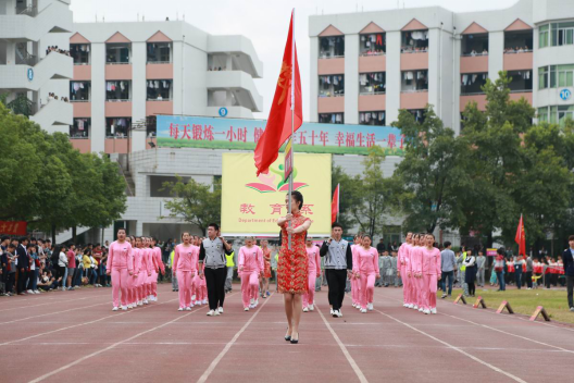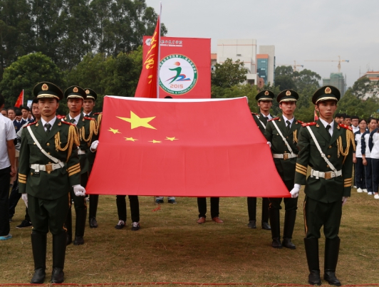 入场式结束后,全体肃立,奏唱中华人民共和国国歌,进行庄严的升旗仪式。院长来永宝教授宣布第十二届田径运动会开幕。