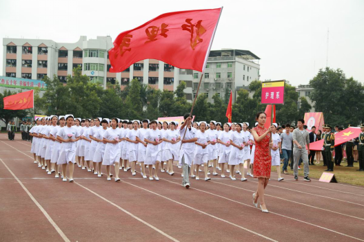 上午9时整,伴着早晨明媚的阳光,踏着激昂奋进的《运动员进行曲》的节奏,运动会入场式开始,走在最前列的是国旗、校旗、会标、锣鼓、裁判员方阵,他们精神抖擞、气宇轩昂地向主席台走来。12支系(部)代表队依次入场,他们穿着整齐的服装,迈着矫健而又坚实的步伐,高喊着嘹亮的口号,顺次通过主席台,接受院领导和全校师生的检阅,展现了我院广大师生积极向上的精神风貌。