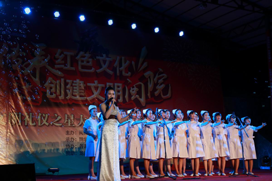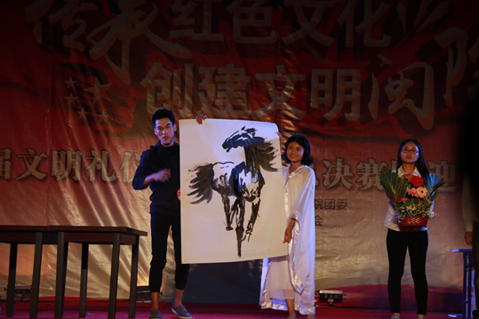 为欢迎2015级全体新生,弘扬闽西红土地精神,展示我院大学生青春风采,创建文明校园,促进我院国家骨干高职院校建设。10月22日晚,我院在槟龙球场举办第四届文明礼仪之星大赛总决赛暨迎新文艺晚会。晚会以“传承红色文化 创建文明闽院”为主题,由团委主办,院学生社团联合会承办,各系(部)团委协办。院领导来永宝、吴新业、刘路永、卢兆梅,龙岩中心血站负责同志,办公室、学生工作处、团委、保卫处、各系(部)党总支负责人及全院师生近千人到场观看演出。