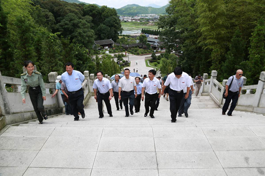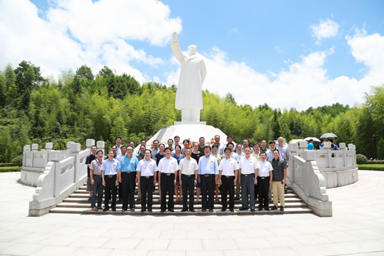 瞻仰完会址,大家步行前往会址北侧的主席纪念园,马春延书记带领大家登上151级台阶,向毛泽东雕像敬献花篮并深深三鞠躬,深切缅怀老一辈革命家的丰功伟绩。