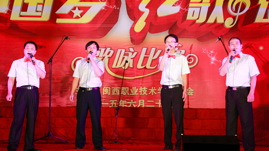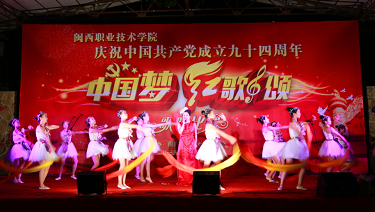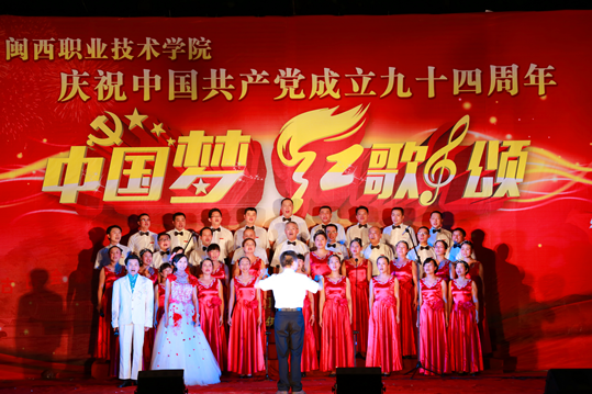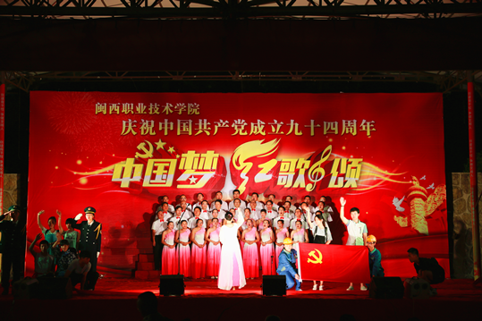 6月29日晚上, 我院在槟龙球场举办庆祝中国共产党成立94周年“中国梦、红歌颂”歌咏比赛。党委马春延书记,院长来永宝教授,副院长吴新业、刘路永、卢兆梅,纪委书记兼工会主席李贞鑫,院长助理李伟闽,龙岩市教育工会副主席修能洪,学院师生等一千多人观看了比赛。