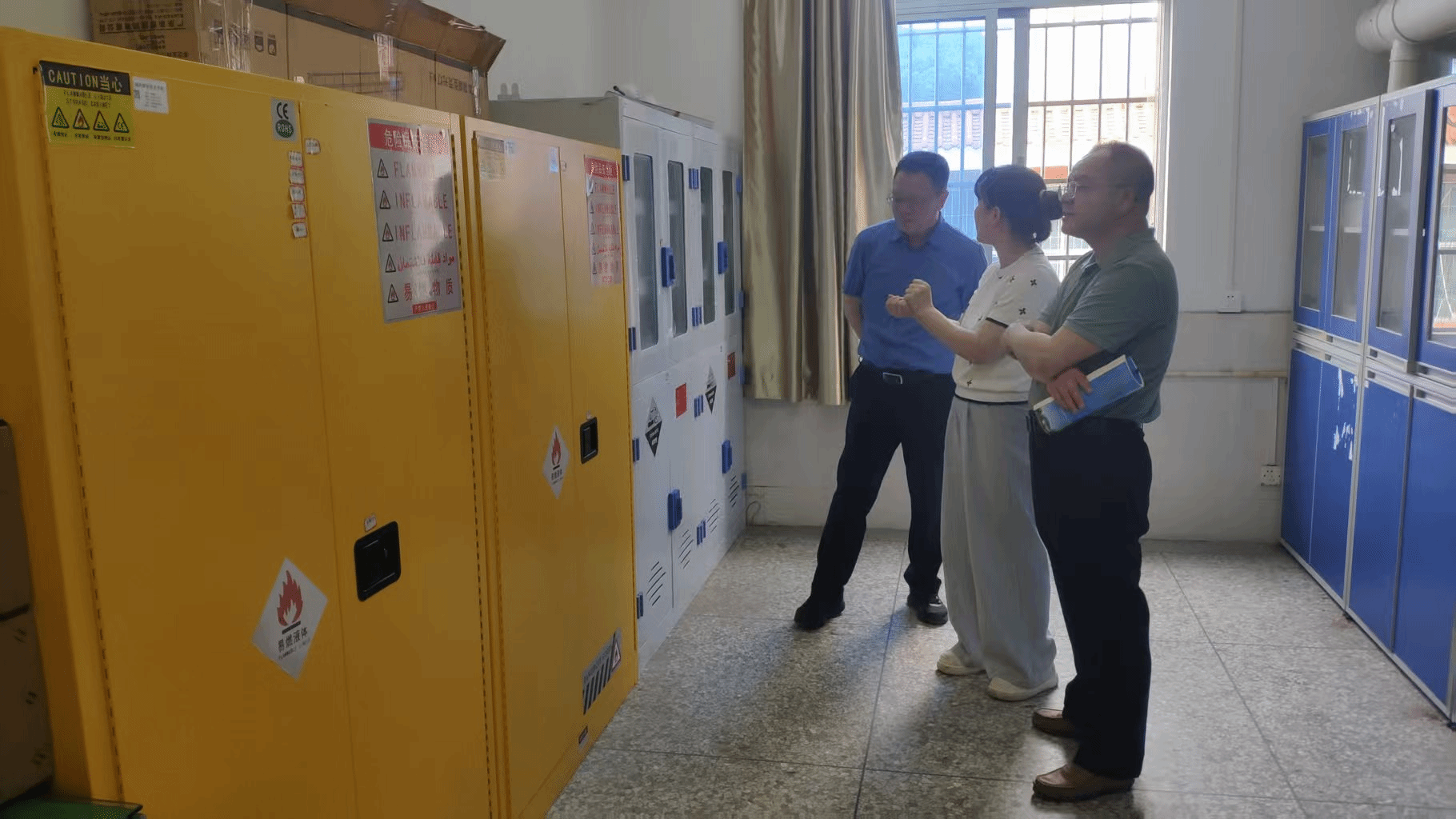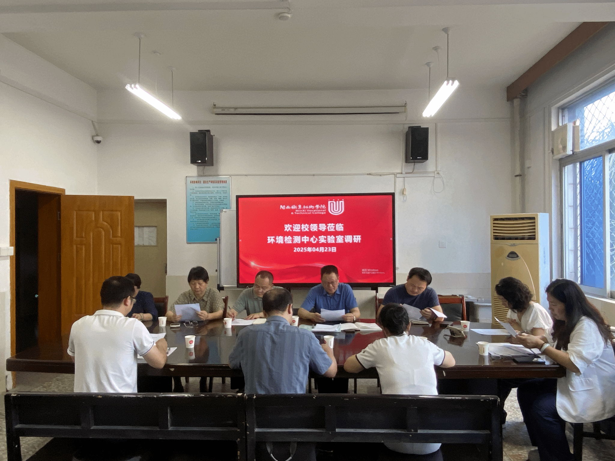 2025年4月23日上午,梁俊平校长、卢兆梅副校长对环境检测中心实验室(具有省级CMA资质)的运行情况进行调研。对外交流合作处、财务处、实训实验管理中心等部门负责人陪同调研。