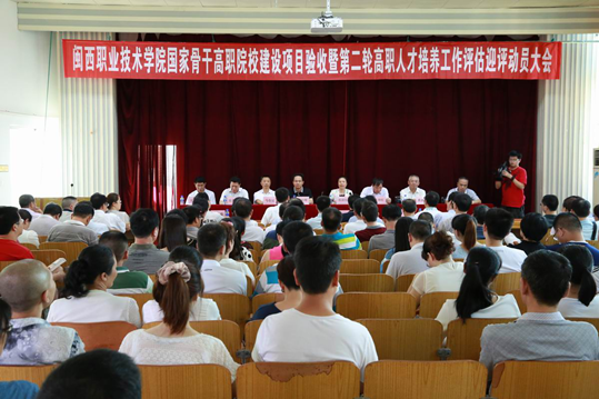 市政府郭丽珍副市长作了重要讲话。她充分肯定了我院国家骨干高职院校建设所取得的成绩,代表市政府向为骨干校建设奋力拼搏、辛勤工作的学院全体教职工表示衷心的感谢和诚挚的敬意。她指出,骨干校建设项目验收与第二轮高职院校人才培养工作评估同步进行,不仅是对学院办学、人才培养的全面检阅,也是对龙岩加快发展高等职业教育的检阅。要提升认识,坚定目标。以高度的责任感、紧迫感和使命感,落实责任、强化举措,全面做好验收各项准备工作,力争在“两部”验收中获得良好以上成绩。要对照项目,自查完善。对照《项目建设方案》《项目建设任务书》和验收文件、人才培养工作评估方案,对项目进行全面自查自验,在自查完善中把好资金关、数据关、材料关。要总结提炼,重在实效。做好项目建设的总结工作,挖掘建设亮点,提炼建设特色,突显建设成效,形成一份具有示范价值的《项目总结报告》,充分展示学院国家骨干校建设的示范成果。要注重研究,敢于创新。在教产研中,更加注重科研项目立项,建设科研平台,提升科研能力。她希望,全院师生迎难而上,合力攻坚,确保第二轮高职人才培养评估顺利通过,确保国家骨干高职院校建设项目以良好成绩通过“两部”验收。