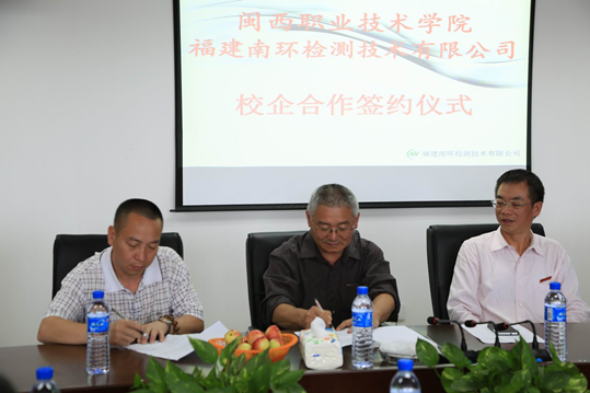 上午,在福建南环检测技术有限公司,来永宝院长与公司韩董事长深入交谈。双方就人才需求、校企合作、科研、学生实习与就业等有关问题进行讨论,达成一致共识,并签订校企合作协议。