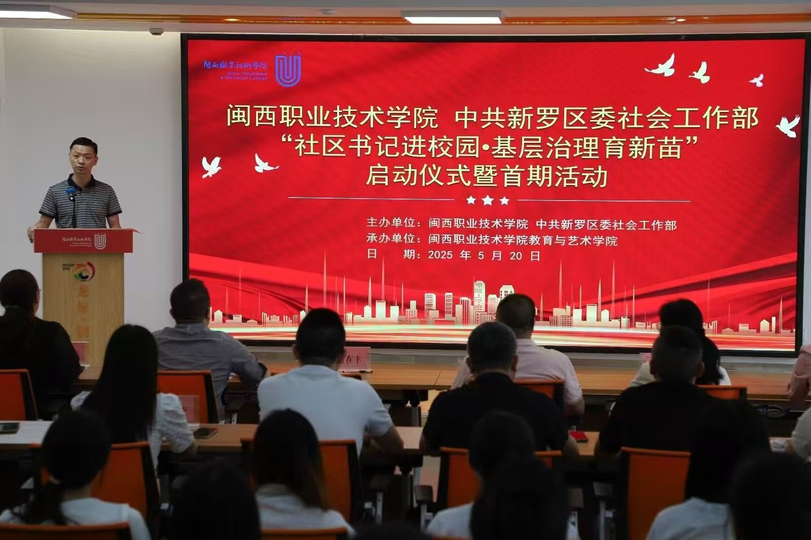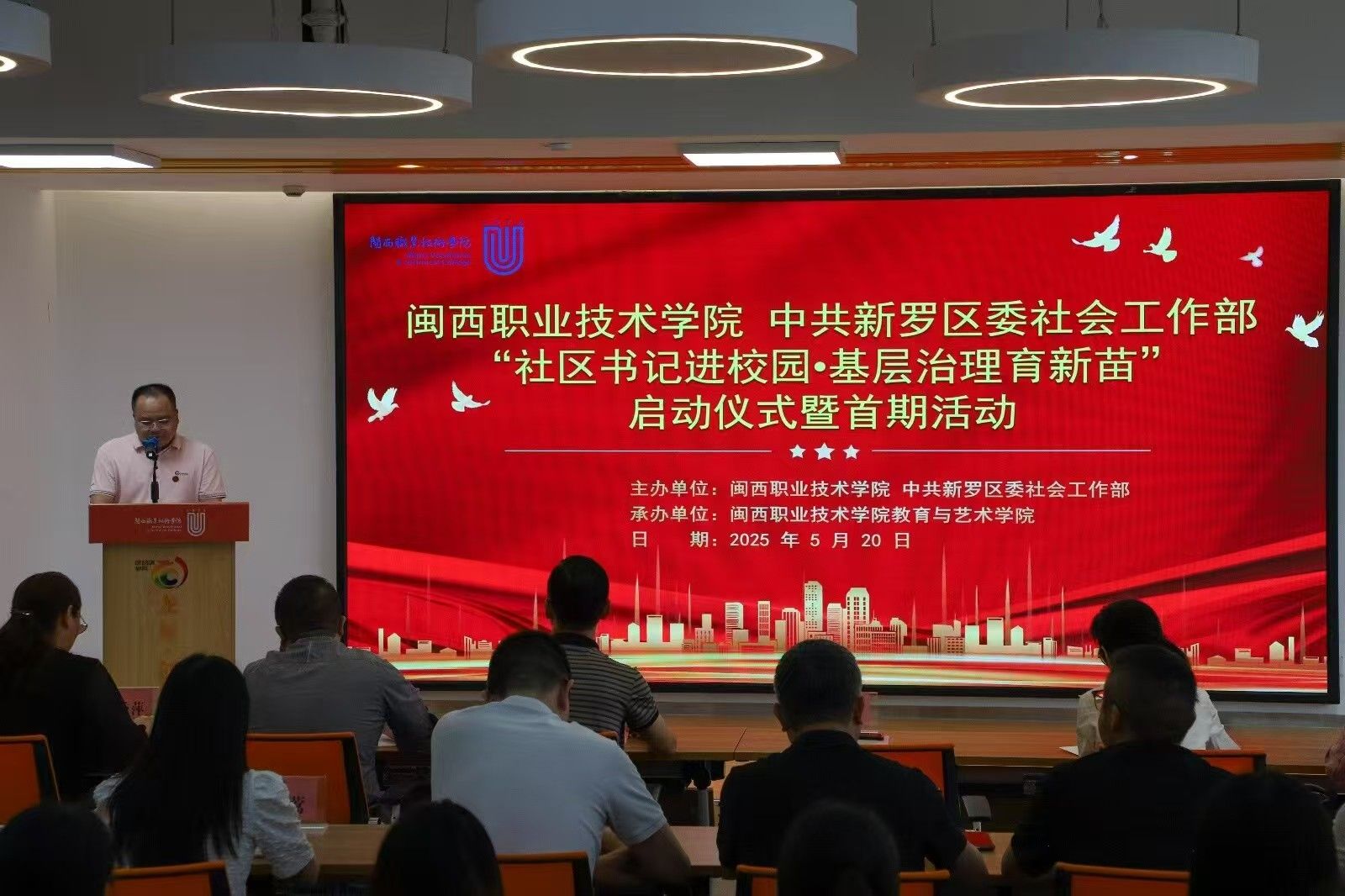 2025年5月20日,“社区书记进校园 • 基层治理育新苗”系列活动启动仪式暨首期活动在MG冰球成功举行。此次活动由中共新罗区委社会工作部与MG冰球联合主办、MG冰球教育与艺术学院承办,旨在深化校社协同育人机制,为基层治理培育专业人才。