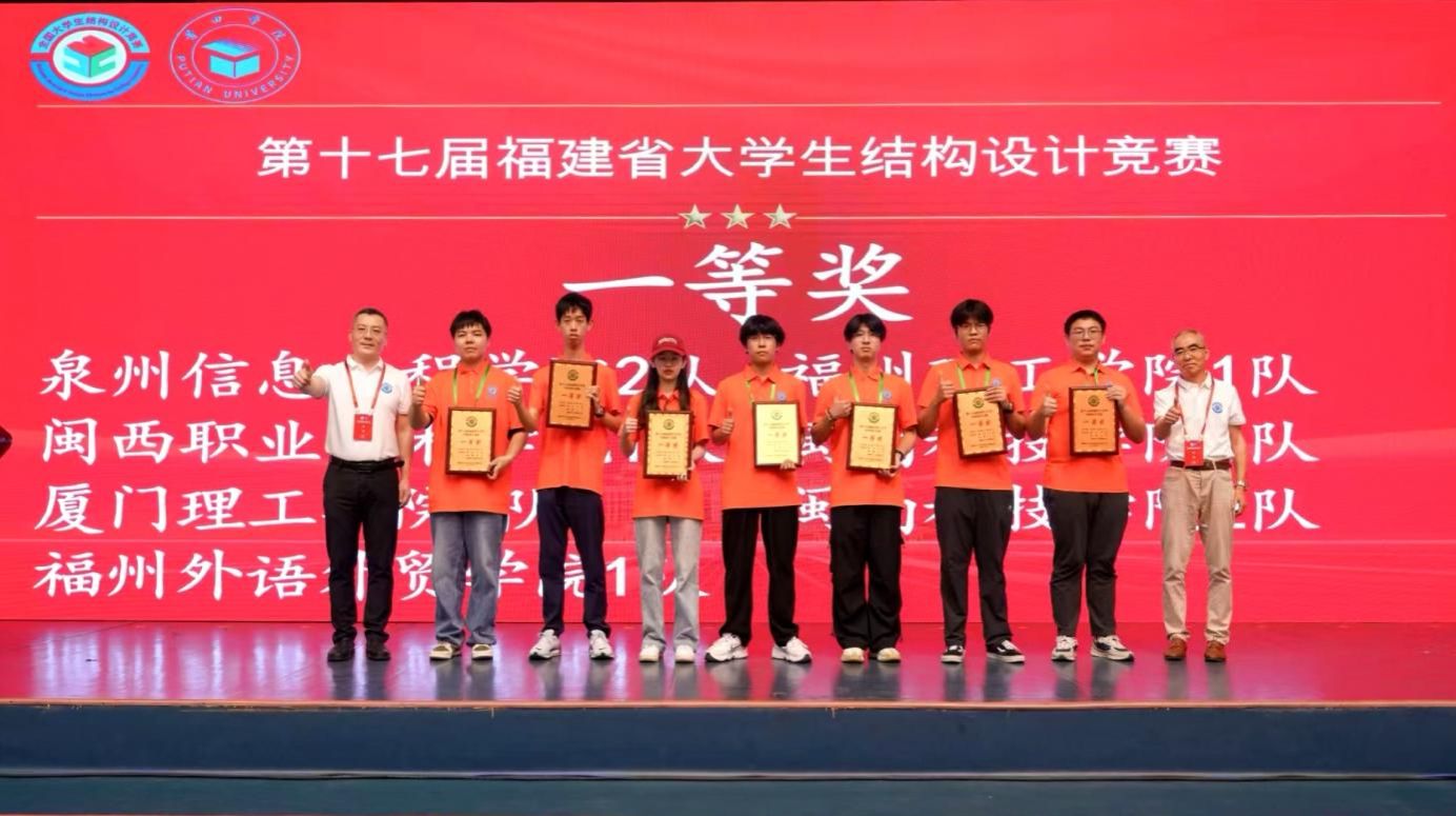 5月15日-18日,第十七届福建省大学生结构设计竞赛在莆田学院举行。MG冰球突破官网代表队荣获一等奖1项(参赛选手:翁桂林、林茜、江淑樊,指导老师:聂丹、刘星)、三等奖1项(参赛选手:涂思旺、冯婧妍、陈雨翔,指导老师:聂丹、刘星)。