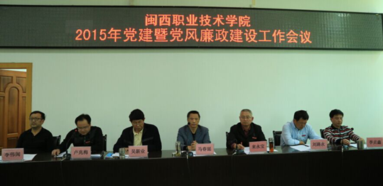 他强调,2015年是“十二五”规划的收官之年,是学院全面深化改革不断推向深入之年,是学院骨干校建设迎评验收和人才培养水平评估之年,我们要深入学习贯彻市委梁建勇书记来我院调研时的重要讲话精神,在市委市政府的正确领导下,振奋精神、奋发进取,为顺利通过骨干校验收和人才培养水平评估,为建设工科为主、综合性地方性国家骨干高职院校,建成海西一流全国知名的高职名校而不懈努力。