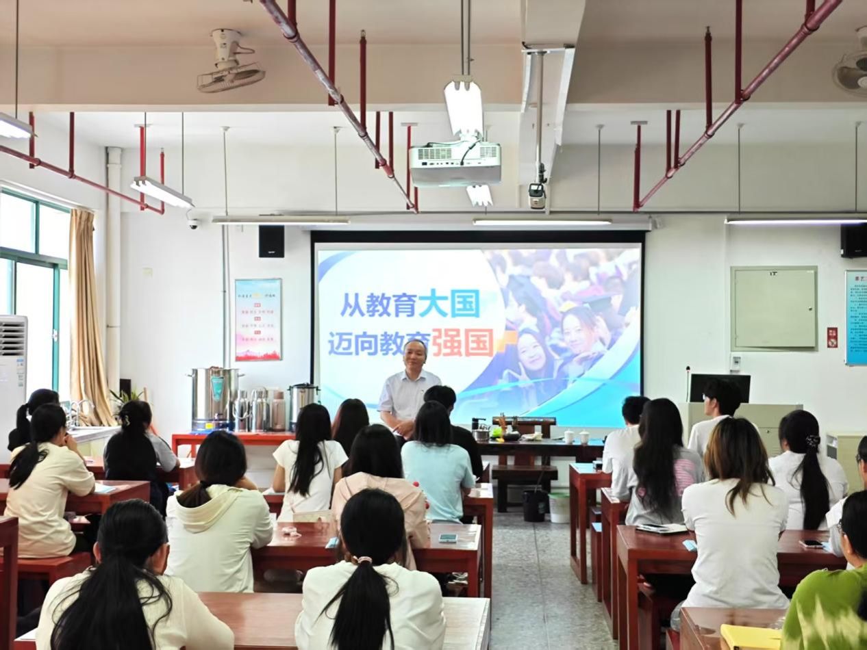 5月21日,校党委委员、副校长张源峰深入文化与旅游学院,走进课堂,以“从教育大国迈向教育强国”为主题,为同学们带来了一堂内容丰富、思想深刻的形势与政策课。