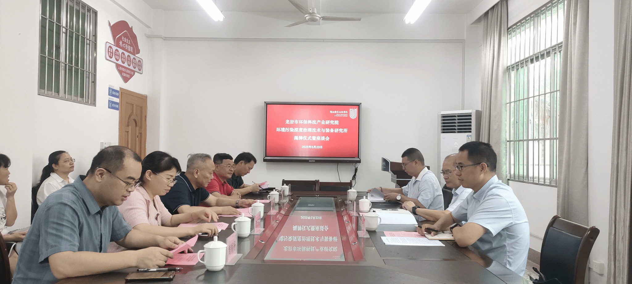 2025年5月23日上午,在灼瑞科技馆举行了龙岩市环保科技产业研究院与MG冰球智能制造学院共建的“环境污染深度治理技术与装备研究所”揭牌仪式暨座谈会。校党委委员、副校长张源峰教授、市科技局成果科四级调研员谢国池、产业研究院副院长赖志鹏,校科研处、对外交流合作处、智能制造学院相关负责人及相关教师参加活动。