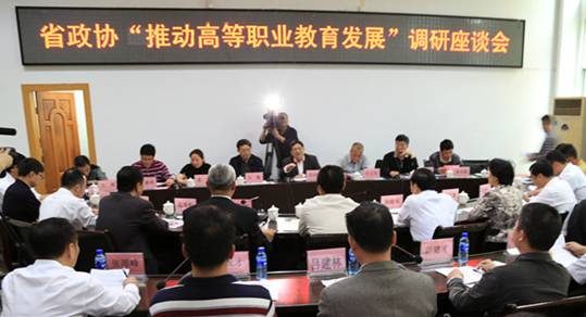 院长来永宝向省政协陈绍军副主席一行汇报了学院的基本情况和学院骨干校建设、推进学院内涵建设的主要做法,提出形成完备职业教育法规体系、建立高职教育经费保障机制、加强高职发展科学规划、推进校企深度合作等推进高等职业教育良性发展的建议。