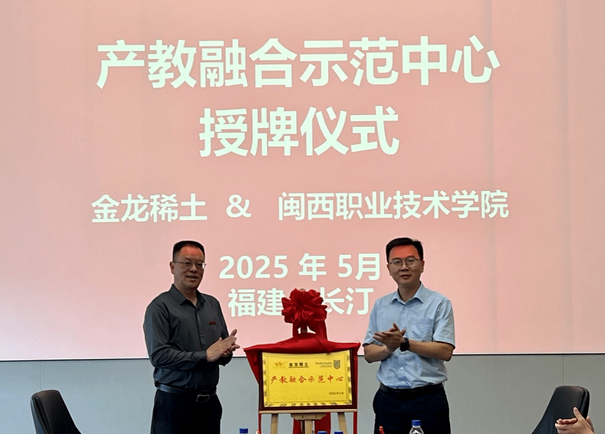 5月29日,校长梁俊平带领智能制造学院、对外合作处相关负责人一行6人赴福建省金龙稀土股份有限公司开展访企拓岗专项行动,并举行产教融合示范中心授牌仪式。