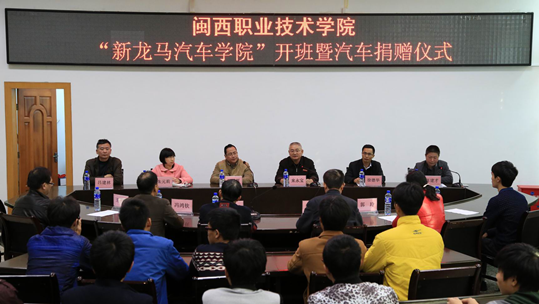 12月12日下午,我院 “新龙马汽车学院”开班暨汽车捐赠仪式在办公楼二楼会议室举行。院长来永宝教授,福建新龙马汽车股份有限公司副总经理陈晨辉,公司人力资源部部长徐德华、经理朱元莉,我院教务处、校企合作处、实训实验管理中心、机械工程系党政等负责人出席仪式。