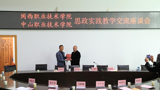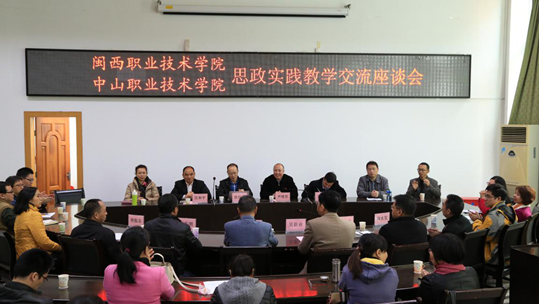 党委书记马春延代表全体师生员工对尹绪忠书记一行表示热烈欢迎,并介绍了我院的基本概况、人才培养模式改革、党建和人文素质教育等方面情况。他希望两所学校多走动多联系、多交流多合作。中山职业技术学院党委书记尹绪忠介绍了中山职业技术学院的基本概况、“一镇一品一专业”的专业布局和“镇校企”的合作办学模式。两校思政部教师就思政实践教学共同关注的一些问题进行了交流。
