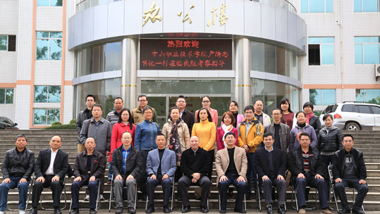 12月12日上午,广东中山职业技术学院党委书记尹绪忠带领人文社科系、学工处、思政部负责人及思政部教师一行16人莅临我院参观考察。我院党委书记马春延、副院长吴新业会见了中山职业技术学院来访佳宾。