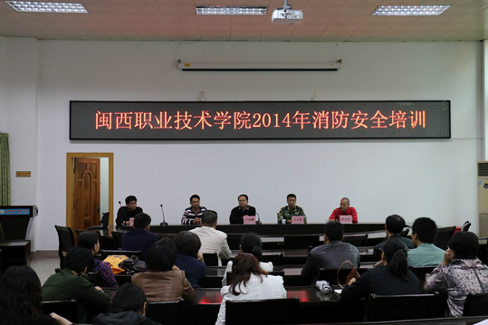 11月12日下午,我院邀请龙岩市特勤中队官兵为广大师生开展消防知识培训和消防安全疏散灭火演练活动。副院长卢兆梅出席活动并讲话。院内消防重点部门防火责任人,全体辅导员,实训实验中心、学生社区服务中心全体管理员,校卫队、自律会的学生干部,参加了讲座和演练。